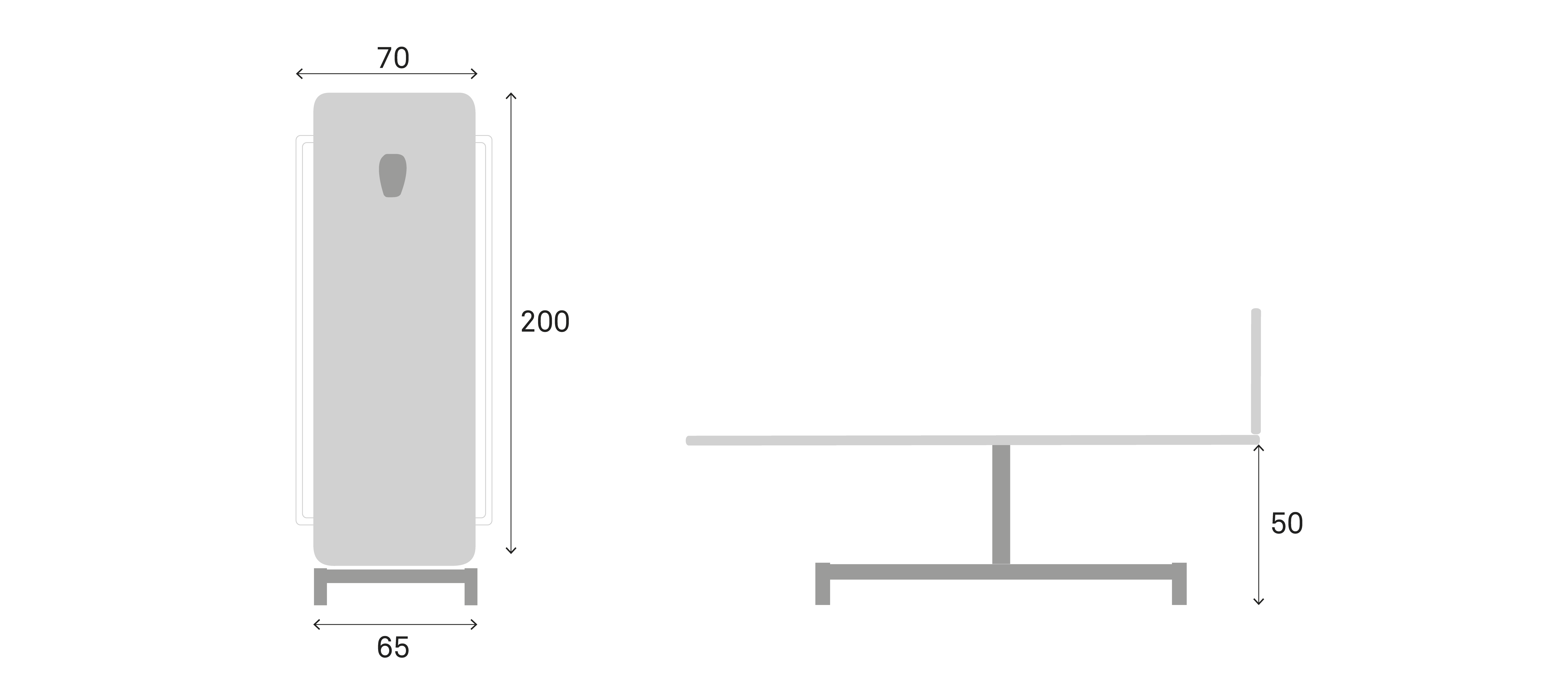 En-sektions statiskt bord med lutning assisterad av elmotor. Den fasta höjden på 49 cm möjliggör enkel förflyttning av patienten till en rullstol.